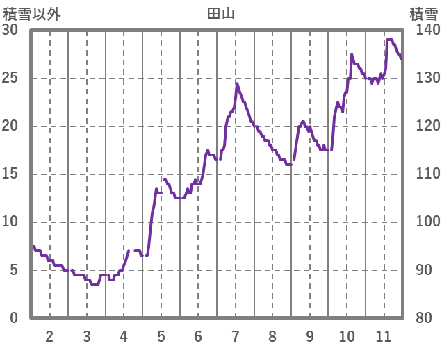 | 日 | 時 | 気温 | 降水 | 風向/風速 | 日照 | 積雪 | 降雪 |
