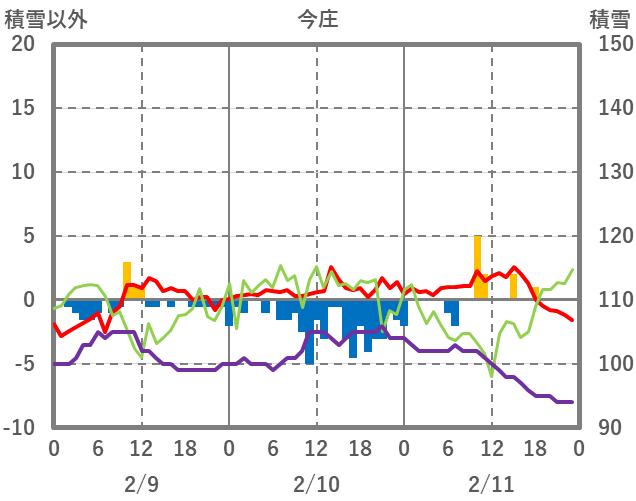 | 日 | 時 | 気温 | 降水 | 風向/風速 | 日照 | 積雪 | 降雪 |