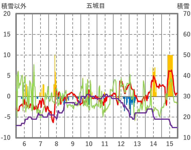 | 日 | 時 | 気温 | 降水 | 風向/風速 | 日照 | 積雪 | 降雪 |