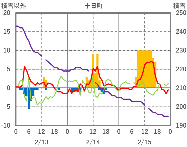 | 日 | 時 | 気温 | 降水 | 風向/風速 | 日照 | 積雪 | 降雪 |
