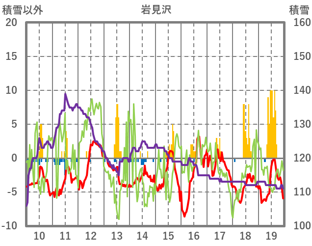 | 日 | 時 | 気温 | 降水 | 風向/風速 | 日照 | 積雪 | 降雪 |