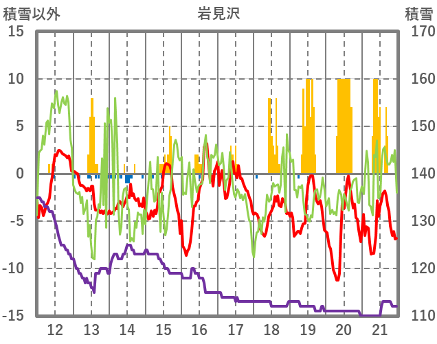 | 日 | 時 | 気温 | 降水 | 風向/風速 | 日照 | 積雪 | 降雪 |