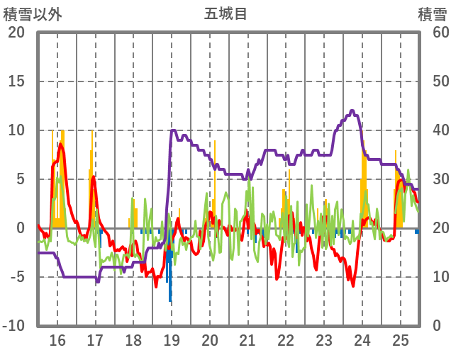| 日 | 時 | 気温 | 降水 | 風向/風速 | 日照 | 積雪 | 降雪 |