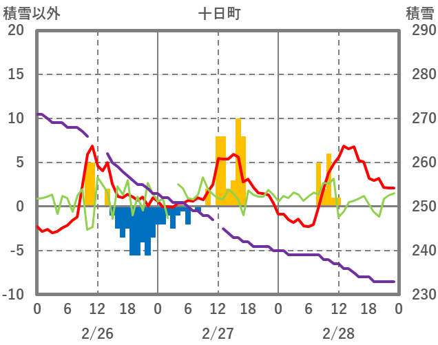 | 日 | 時 | 気温 | 降水 | 風向/風速 | 日照 | 積雪 | 降雪 |