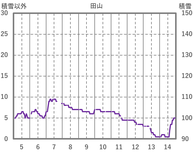 | 日 | 時 | 気温 | 降水 | 風向/風速 | 日照 | 積雪 | 降雪 |