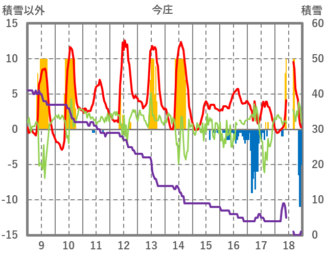 | 日 | 時 | 気温 | 降水 | 風向/風速 | 日照 | 積雪 | 降雪 |