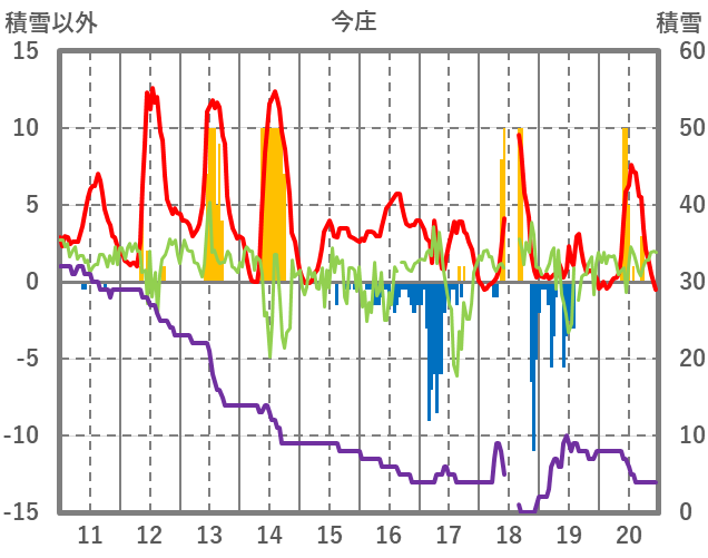 | 日 | 時 | 気温 | 降水 | 風向/風速 | 日照 | 積雪 | 降雪 |