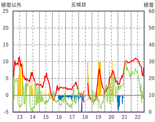 | 日 | 時 | 気温 | 降水 | 風向/風速 | 日照 | 積雪 | 降雪 |