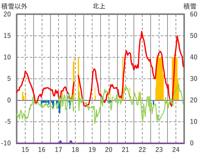 | 日 | 時 | 気温 | 降水 | 風向/風速 | 日照 | 積雪 | 降雪 |