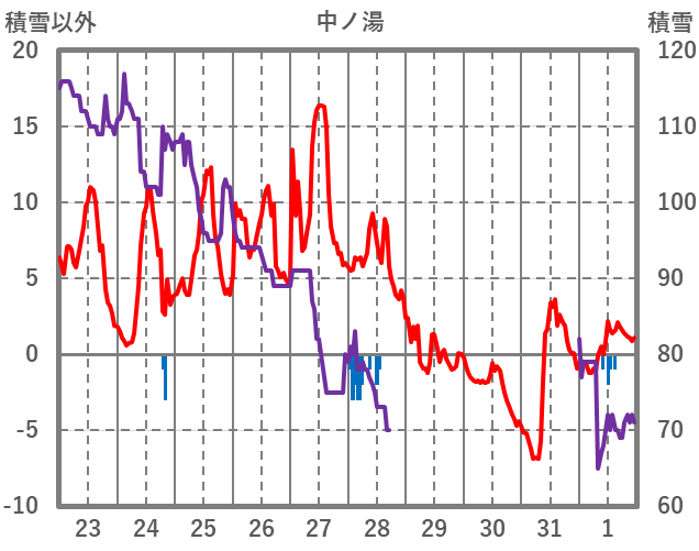 | 日 | 時 | 気温 | 降水 | 風向/風速 | 日照 | 積雪 | 降雪 |