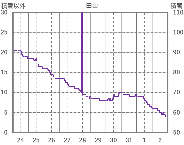 | 日 | 時 | 気温 | 降水 | 風向/風速 | 日照 | 積雪 | 降雪 |