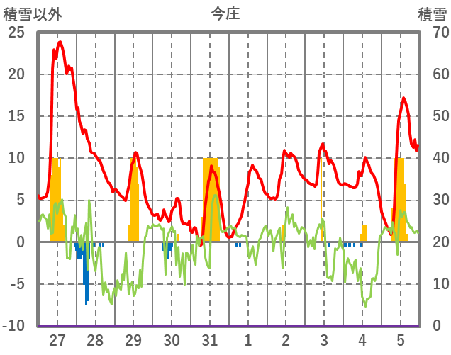 | 日 | 時 | 気温 | 降水 | 風向/風速 | 日照 | 積雪 | 降雪 |