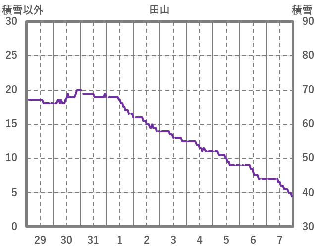 | 日 | 時 | 気温 | 降水 | 風向/風速 | 日照 | 積雪 | 降雪 |