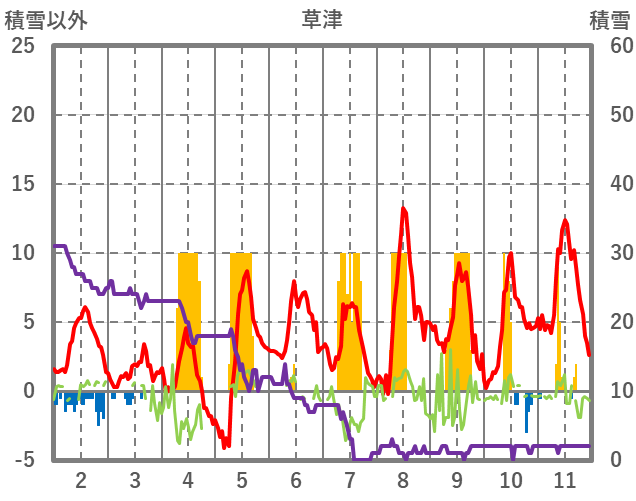 | 日 | 時 | 気温 | 降水 | 風向/風速 | 日照 | 積雪 | 降雪 |