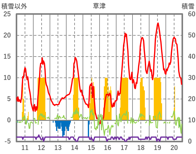 | 日 | 時 | 気温 | 降水 | 風向/風速 | 日照 | 積雪 | 降雪 |
