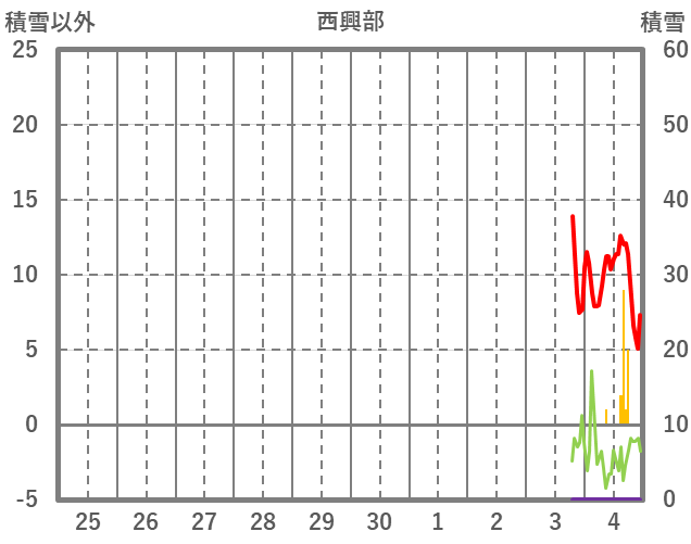 | 日 | 時 | 気温 | 降水 | 風向/風速 | 日照 | 積雪 | 降雪 |