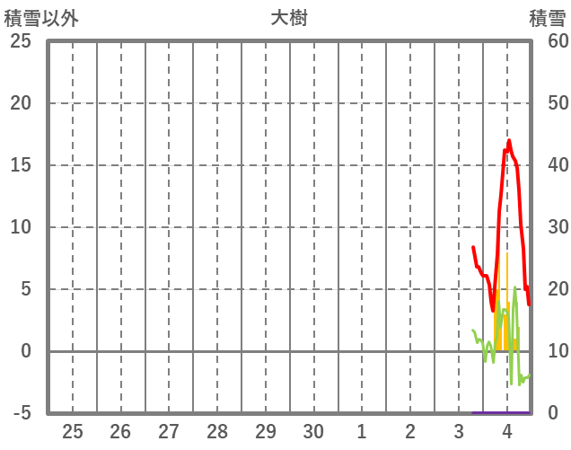 | 日 | 時 | 気温 | 降水 | 風向/風速 | 日照 | 積雪 | 降雪 |