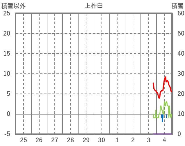 | 日 | 時 | 気温 | 降水 | 風向/風速 | 日照 | 積雪 | 降雪 |