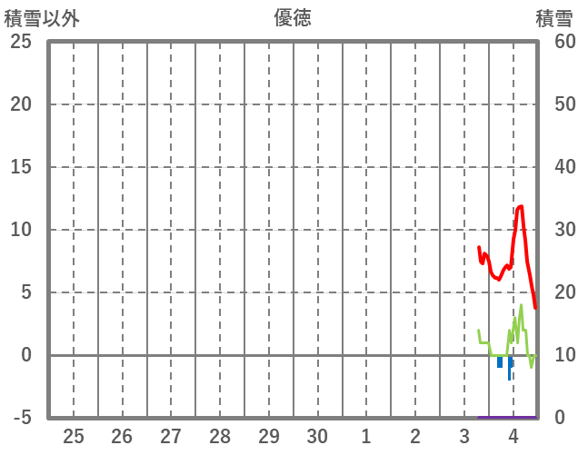 | 日 | 時 | 気温 | 降水 | 風向/風速 | 日照 | 積雪 | 降雪 |