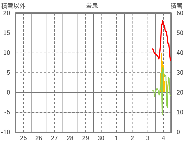 | 日 | 時 | 気温 | 降水 | 風向/風速 | 日照 | 積雪 | 降雪 |