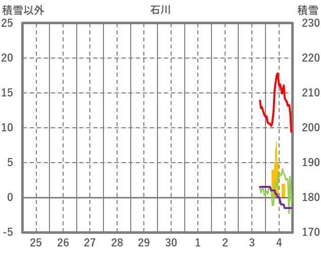 | 日 | 時 | 気温 | 降水 | 風向/風速 | 日照 | 積雪 | 降雪 |