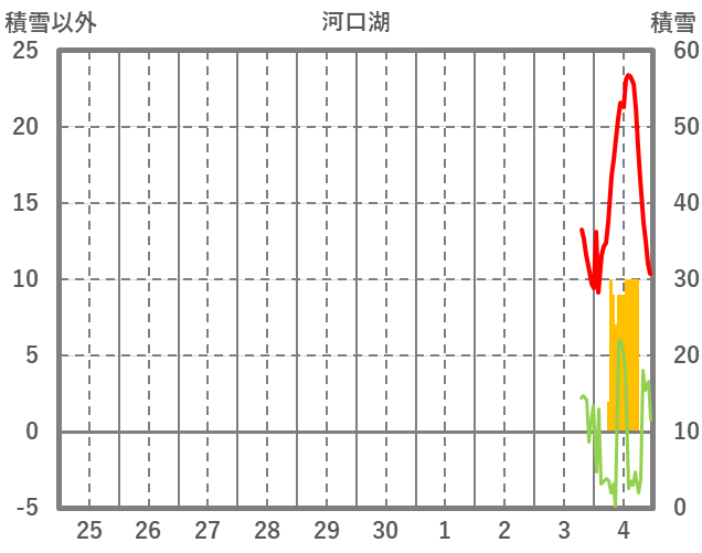 | 日 | 時 | 気温 | 降水 | 風向/風速 | 日照 | 積雪 | 降雪 |