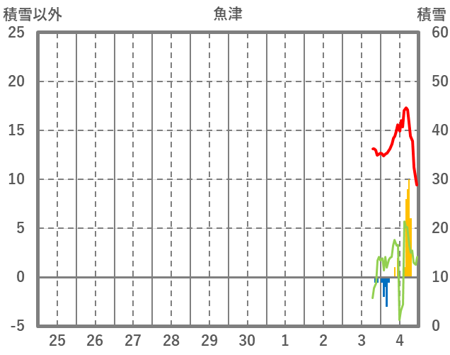 | 日 | 時 | 気温 | 降水 | 風向/風速 | 日照 | 積雪 | 降雪 |