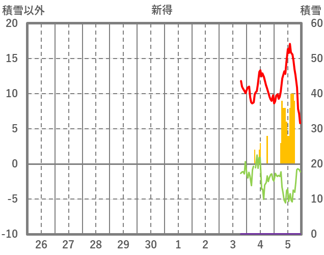 | 日 | 時 | 気温 | 降水 | 風向/風速 | 日照 | 積雪 | 降雪 |