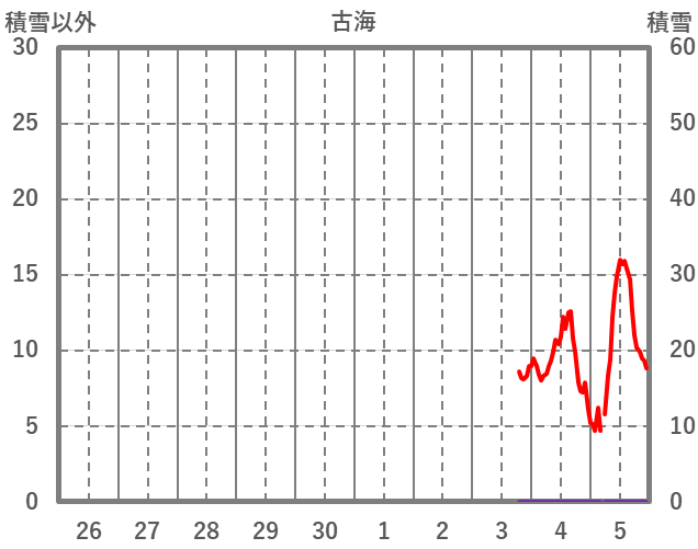 | 日 | 時 | 気温 | 降水 | 風向/風速 | 日照 | 積雪 | 降雪 |