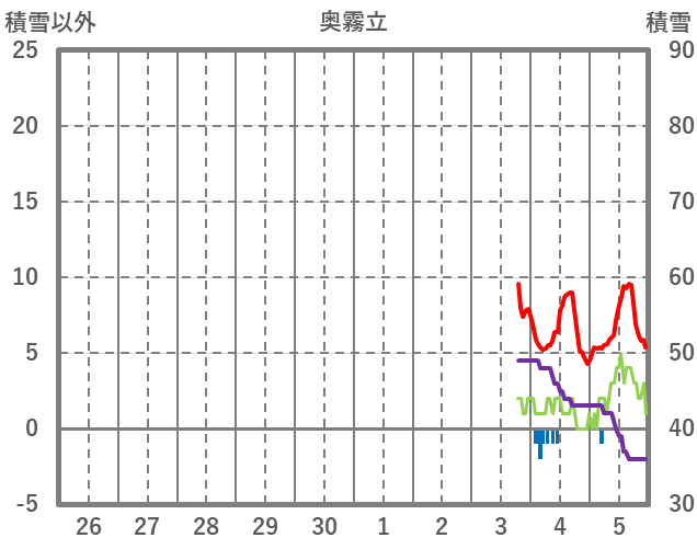 | 日 | 時 | 気温 | 降水 | 風向/風速 | 日照 | 積雪 | 降雪 |