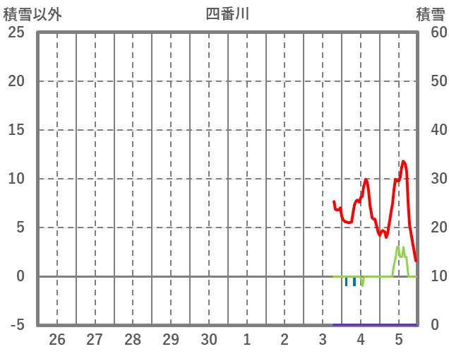 | 日 | 時 | 気温 | 降水 | 風向/風速 | 日照 | 積雪 | 降雪 |