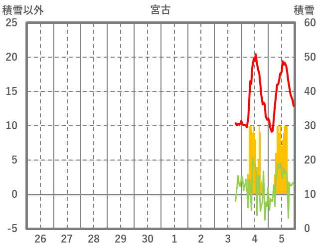 | 日 | 時 | 気温 | 降水 | 風向/風速 | 日照 | 積雪 | 降雪 |