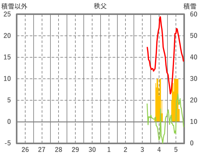 | 日 | 時 | 気温 | 降水 | 風向/風速 | 日照 | 積雪 | 降雪 |