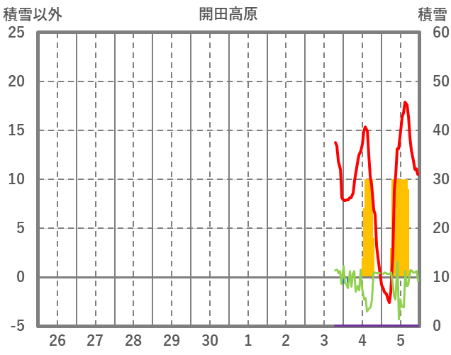 | 日 | 時 | 気温 | 降水 | 風向/風速 | 日照 | 積雪 | 降雪 |