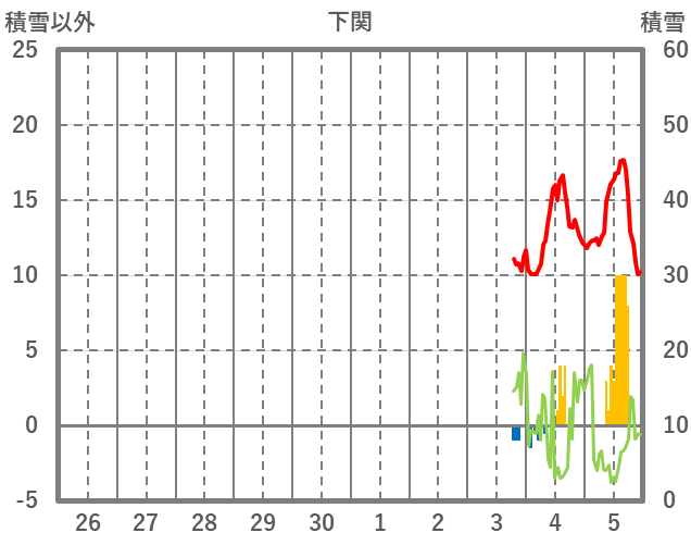 | 日 | 時 | 気温 | 降水 | 風向/風速 | 日照 | 積雪 | 降雪 |