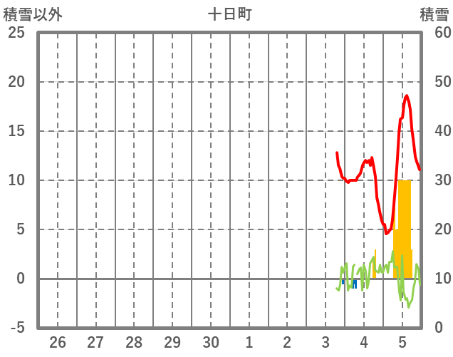 | 日 | 時 | 気温 | 降水 | 風向/風速 | 日照 | 積雪 | 降雪 |