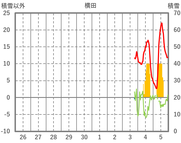| 日 | 時 | 気温 | 降水 | 風向/風速 | 日照 | 積雪 | 降雪 |