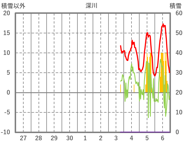 | 日 | 時 | 気温 | 降水 | 風向/風速 | 日照 | 積雪 | 降雪 |