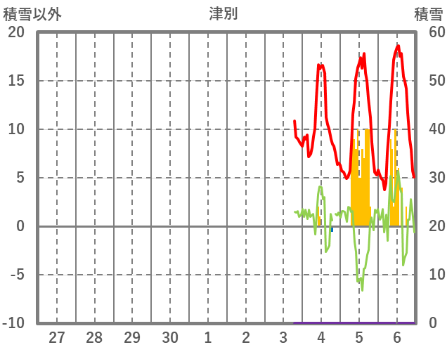 | 日 | 時 | 気温 | 降水 | 風向/風速 | 日照 | 積雪 | 降雪 |