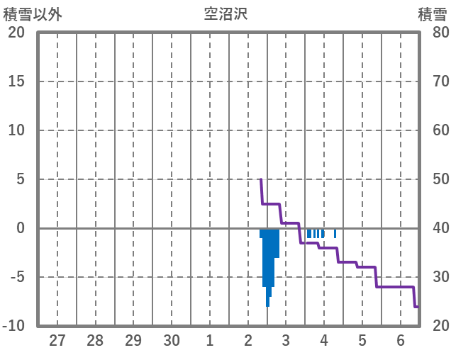 | 日 | 時 | 気温 | 降水 | 風向/風速 | 日照 | 積雪 | 降雪 |