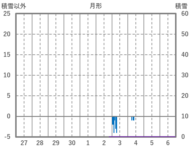 | 日 | 時 | 気温 | 降水 | 風向/風速 | 日照 | 積雪 | 降雪 |