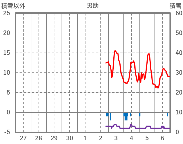 | 日 | 時 | 気温 | 降水 | 風向/風速 | 日照 | 積雪 | 降雪 |