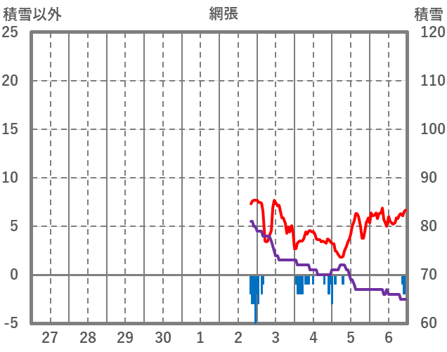 | 日 | 時 | 気温 | 降水 | 風向/風速 | 日照 | 積雪 | 降雪 |