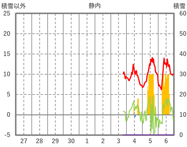 | 日 | 時 | 気温 | 降水 | 風向/風速 | 日照 | 積雪 | 降雪 |
