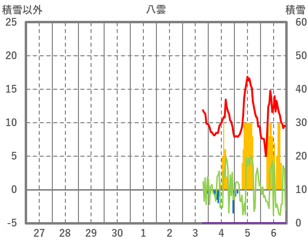 | 日 | 時 | 気温 | 降水 | 風向/風速 | 日照 | 積雪 | 降雪 |