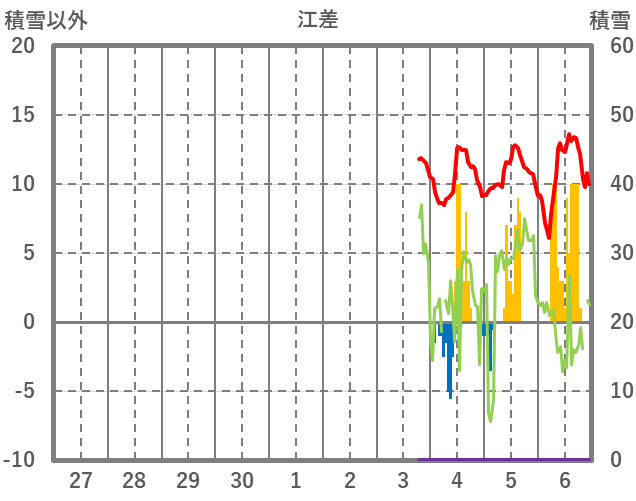 | 日 | 時 | 気温 | 降水 | 風向/風速 | 日照 | 積雪 | 降雪 |
