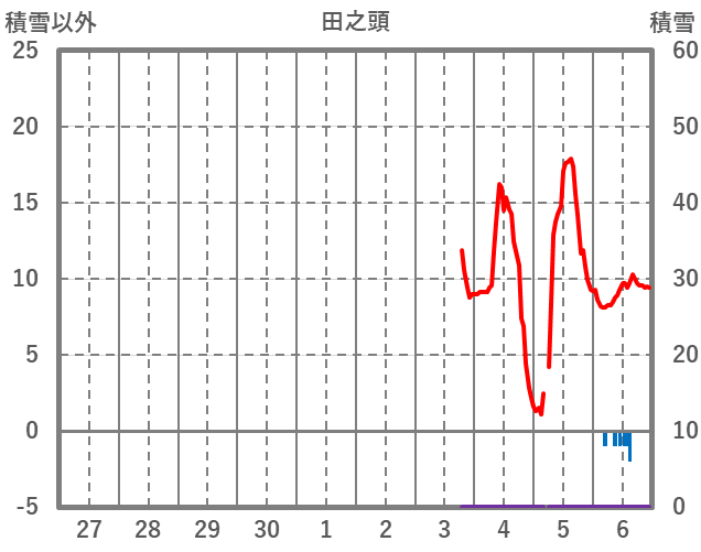 | 日 | 時 | 気温 | 降水 | 風向/風速 | 日照 | 積雪 | 降雪 |