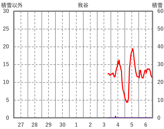 | 日 | 時 | 気温 | 降水 | 風向/風速 | 日照 | 積雪 | 降雪 |