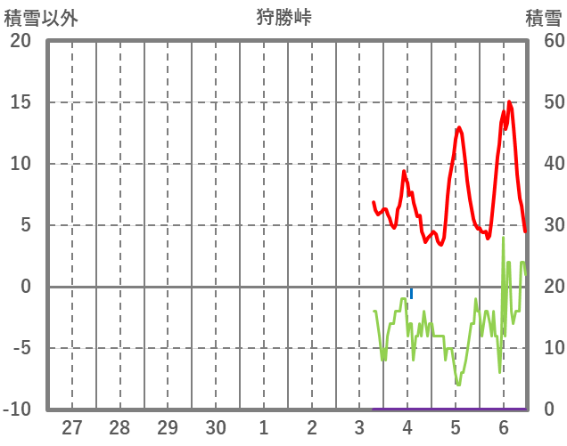 | 日 | 時 | 気温 | 降水 | 風向/風速 | 日照 | 積雪 | 降雪 |