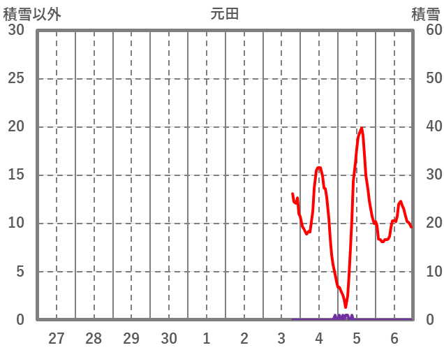 | 日 | 時 | 気温 | 降水 | 風向/風速 | 日照 | 積雪 | 降雪 |